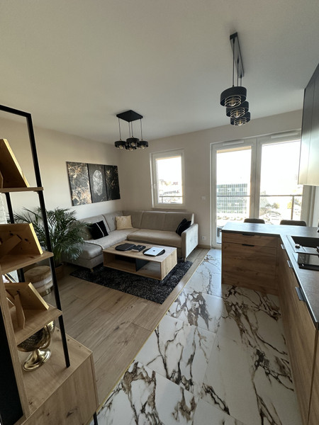 Do wynajęcia nowoczesne oraz komfortowe mieszkanie 2-pokojowe o powierzchni 40 m² położone na 4 piętrze w 7-piętrowym apartamentowcu z windą z 2022 roku na warszawskim Mokotowie – Służewcu (ul. Bokserska).
