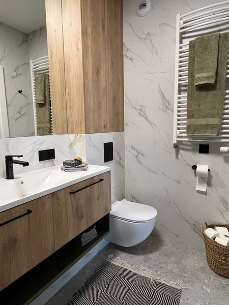 The flat is equipped with a smart home system that allows you to control the lighting, selected electrical circuits, heating and domestic water. The kitchenette and bathroom are equipped with high-end appliances.