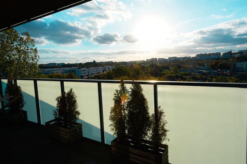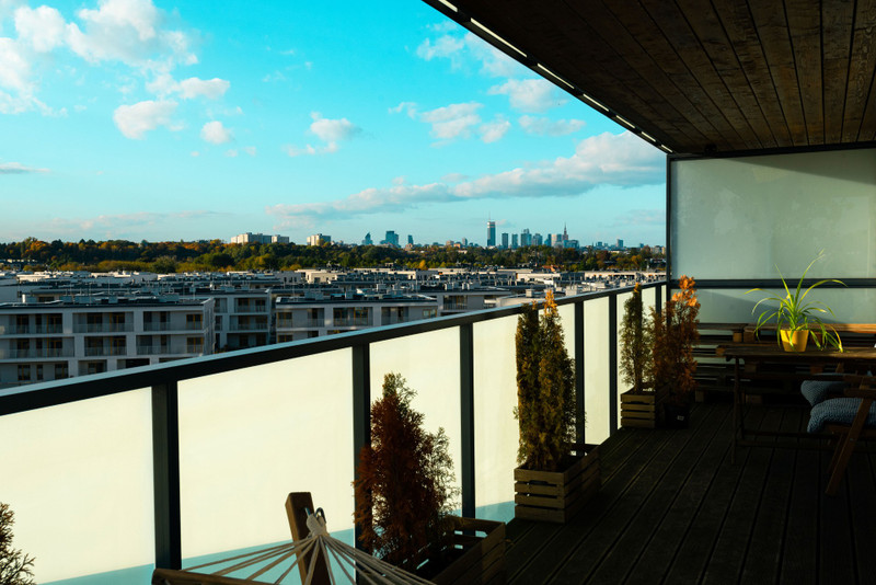 • 37-metrowego tarasu dookoła mieszkania (wyjście na taras z każdego pokoju) z hamakiem