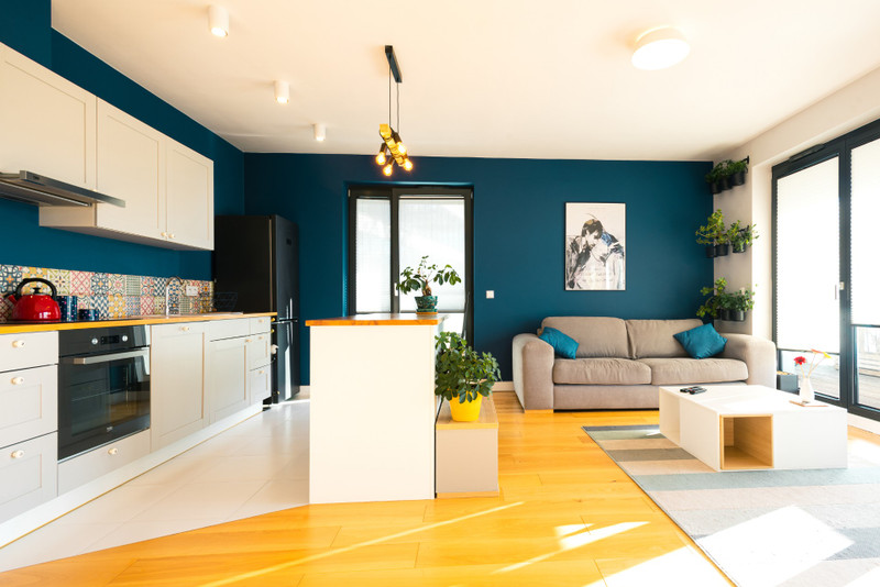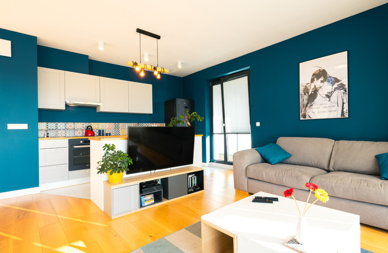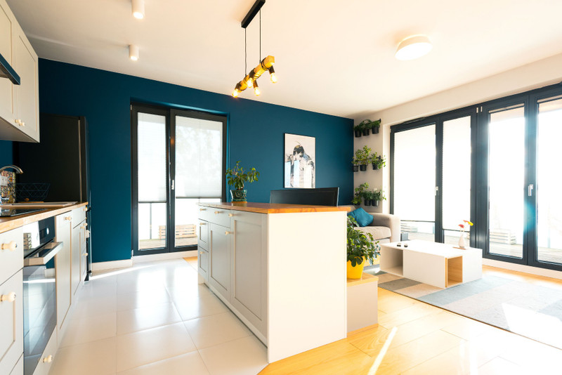 • przestronnego prawie 40-metrowego salonu z kuchnią i wyspą kuchenną.