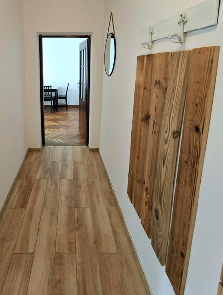 Mieszkanie wyróżnia się przestrzenią i klimatem charakterystycznym dla starszego budownictwa: wysokie sufity (ok. 2,9 m), oryginalny dębowy parkiet w jodełkę oraz jasne, świeżo odmalowane wnętrza.