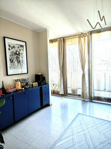 Apartament zlokalizowany jest w nowoczesnej inwestycji Triton Park na Ochocie. Budynek charakteryzuje się wysokim standardem wykończenia części wspólnych, całodobową recepcją oraz rozwiniętą infrastrukturą usługową (sklepy, kawiarnie w parterze budynku).