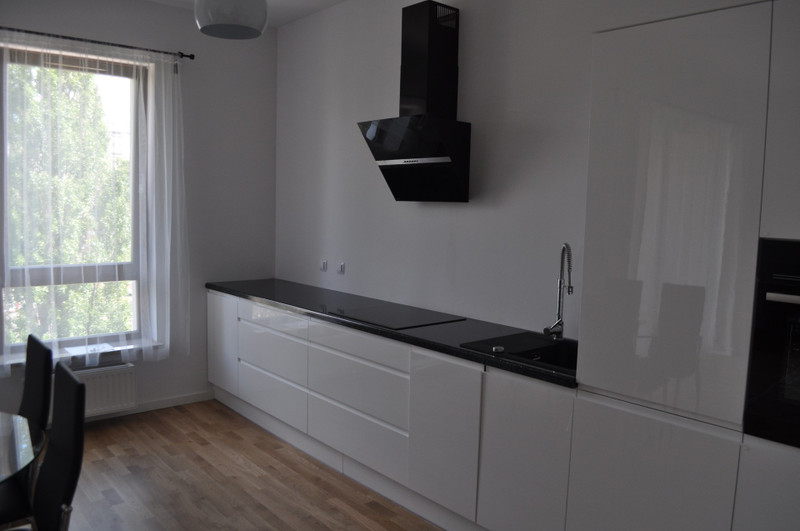 The exclusive apartment is located on the 4 floor of a 8-story building. The three-room property with an area of 69 m2 consists of a sunny living room with a kitchenette, two bedrooms, bathroom and an wardrobe. The property is fully furnished and finished to a high standard. An additional advantage is a large loggia and the possibility of relaxing on warm days. The apartment includes one parking space in the underground garage. The apartment will be available for future tenants from January.