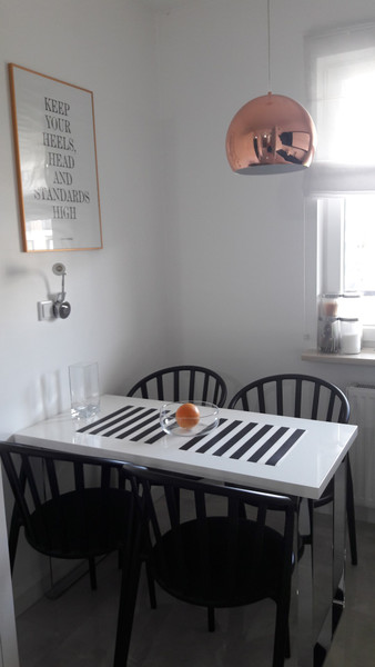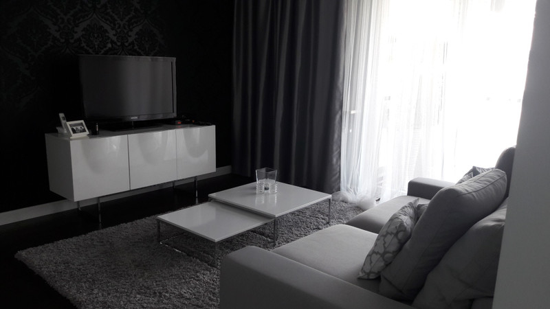 Mieszkanie jest gustownie urządzone, w pełni umeblowane i wyposażone we wszystkie niezbędne sprzęty (telewizor, pralka, lodówka, płyta indukcyjna, piekarnik, mikrofalówka, zmywarka). Łazienka z prysznicem, salon wyposażony jest w rozkładaną kanapę z funkcją spania, witryny oraz szafkę RTV, sypialnia wyposażona w wygodne łóżko tapicerowane, przestronną szafę oraz toaletkę.