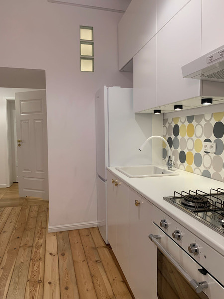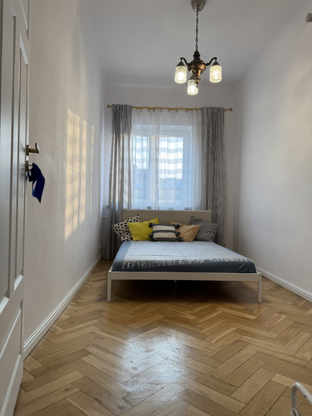 Przytulne ciche mieszkanie po generalnym remoncie , idealne dla pary lub singla, świetnie skomunikowane, tramwaje i autobusy, infrastruktura miejska, 350m spacerem do metra Wileńska, 4 piętro bez windy w domu z cegły z lat pięćdziesiątych, parkiety dębowe, jasne doświetlone pomieszczenia wysokość do sufitu 3m, częściowo umeblowane, 50 mkw na nich 2 pokoje ( sypialnia 10,5 mkw + living 20 mkw) plus osobna kuchnia ( 8 mkw ) , przedpokój z szafą i pawlaczem, łazienka ok 3,5 mkw ( prysznic, WC ) ; living do własnej aranżacji - widok z okna na ulicę Małą oraz Inżynierską, okna od sypialni i kuchni : widok na zamknięte podwórze, mieszkanie dostępne od 25.04.2026r, miesięczna opłata 3 600 zł + ok.600 zł zaliczka na wszystkie media , kulturalne zwierzęta mile widziane :)