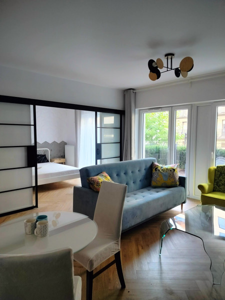 Oferuję do wynajęcia swieżo wyremontowane mieszkanie o powierzchni 44 m w pełni wyposażone i umeblowane w klimatycznym apartamentowcu przy ul Szwedzkiej w Warszawie, w odległości ok 500 m od stacji metra. Mieszkanie usytuowane jest na parterze z widokiem na ogród wewnętrzny,co oznacza brak hałasów ulicznych. Do mieszkania przynależy duży wyposażony taras . Mieszkanie składa się z salonu z aneksem kuchennym, sypialni oraz łazienki z wygodnym prysznicem typu walk in. Kuchnia wyposażona jest w niezbędne AGD w tym w zmywarkę. W salonie sofa z funkcją spania i pojemnikiem na pościel. W sypialni dwuosobowe łóżko z wygodnym materacem oraz pojemna podwójna szafa, w przedpokoju kolejna szafa. W garażu podziemnym miejsce postojowe /opcjonalnie do uzgodnienia/. Oferta wynajmu długoterminowego, tj minimum rok, skierowana jest do osób niepalących,bez dzieci i zwierząt. Czynsz najmu 3200 zł plus opłaty administracyjne w wysokości ok 745 zł,w tym ciepła i zimna woda, ogrzewanie. Internet, Tv, prąd po stronie wynajmującego. Kaucja zwrotna w wysokości 4000 zł. Proszę o kontakt telefoniczny794 602 920