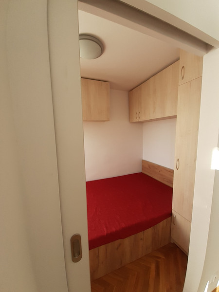 Pomieszczenia: pokój dzienny, oddzielna sypialnia z wygodnym, dwuosobowym łóżkiem (materac 140x200cm, stelaż materaca podnoszony na podnośniku pneumatycznym - wewnątrz bardzo pojemna przestrzeń do przechowywania), oddzielna w pełni wyposażona kuchnia, bardzo dobrze oświetlona łazienka z dużą wanną i podsufitową suszarką na pranie, przedpokój.