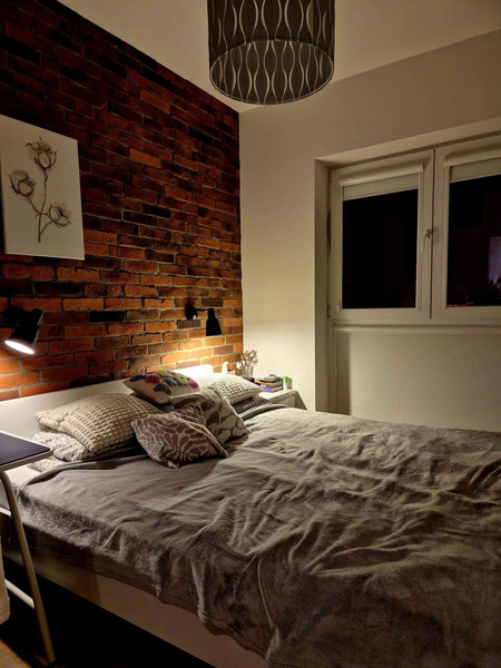 • Sypialnia 1: łóżko małżeńskie 160 cm, szafki nocne, możliwość wstawienia biurka.