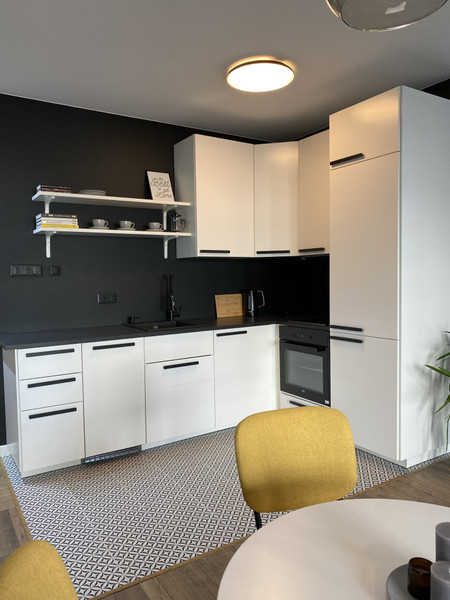 Dzięki otwartemu salonowi mieszkanie robi wrażenie bardzo przestrzennego i jeszcze większego. Gwarantuje wygodne funkcjonowanie nawet 4 osobom, dodatkowo w salonie znajduje się rozkładana 2-osobowa kanapa. W salonie jest osobne miejsce z biurkiem – idealne jako kącik do pracy.