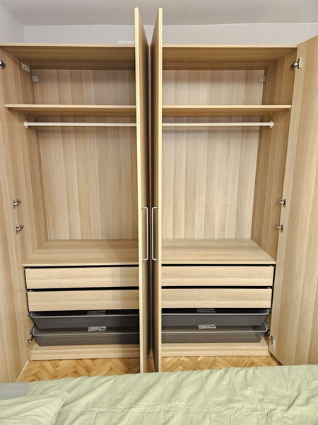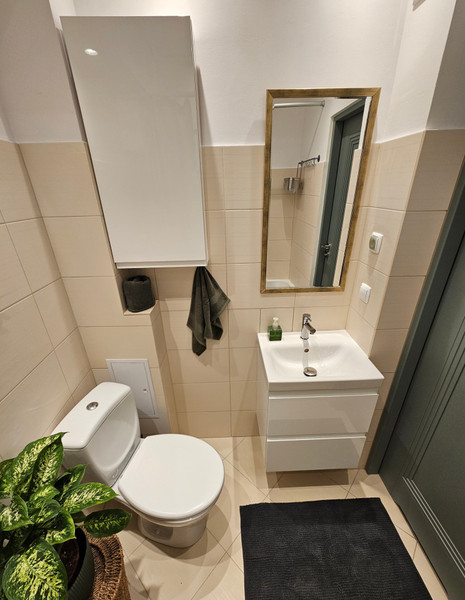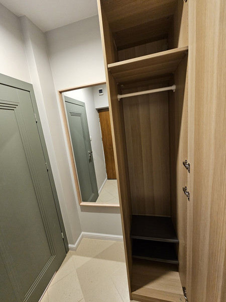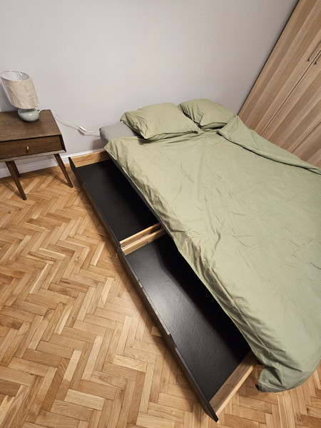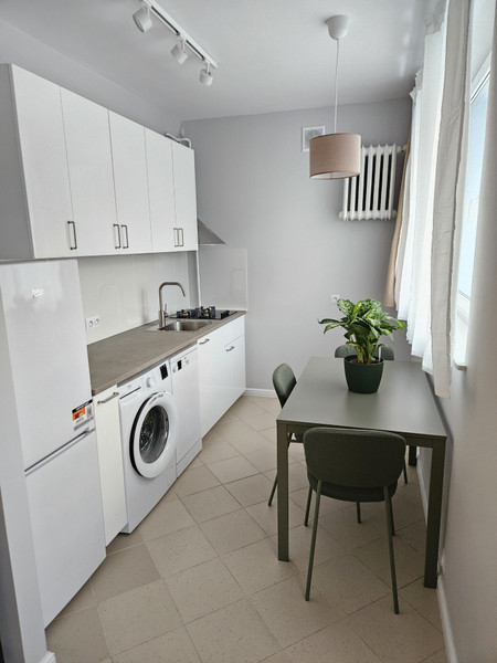 • Oddzielna, widna kuchnia – w pełni wyposażona, urządzenie AGD zastępujące piekarnik: frytkownica beztłuszczowa (air fryer) lub piekarnik nadblatowy, do ustalenia z nowym wynajmującym.