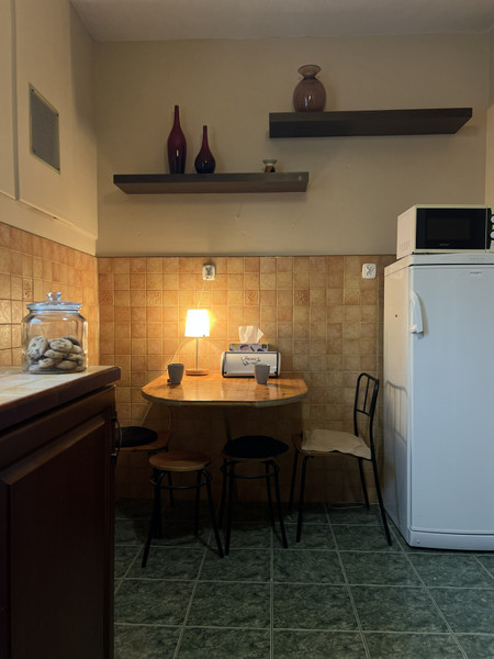 W wyposażeniu mieszkania jest też odkurzacz, żelazko, deska do prasowania, suszarka do włosów oraz nowy czajnik i pełne wyposażenie kuchni (talerze, garnki, sztućce itd).