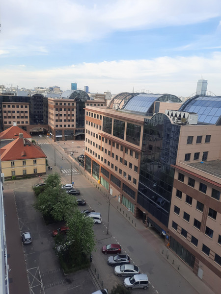Nowe antywłamaniowe drzwi Gerda, nowe zamki, nowa elektryka. Piętro 10 (z 15). 6 nowych wind, domofon, ochrona. Okna na wschód (Atrium i dalej Park Mirowski).