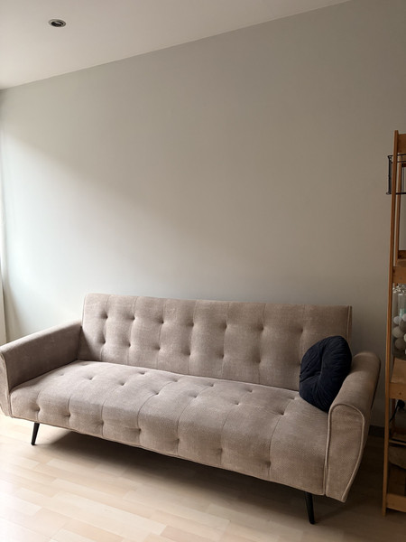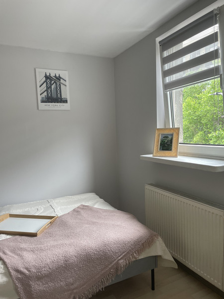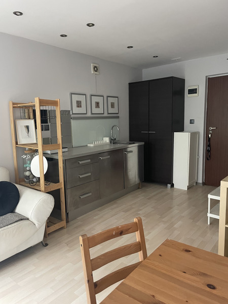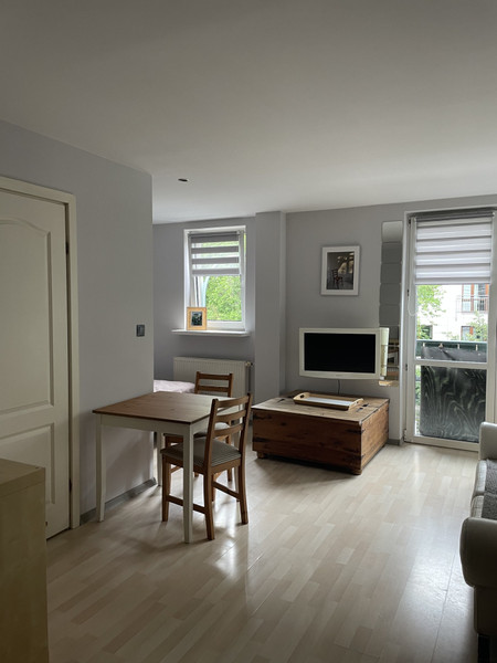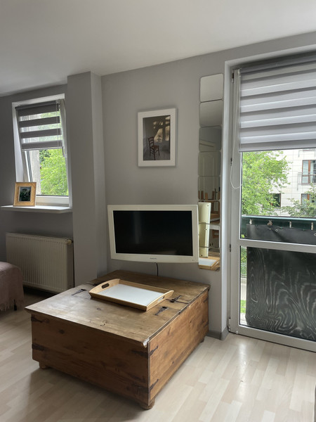 Mieszkanie umeblowane i wyposażone (pralka, lodówka, kuchenka indukcyjna przenośna). Duży i jasny pokój dzienny z aneksem kuchennym i dużą szafą do przechowywania, łazienka z wanną.
