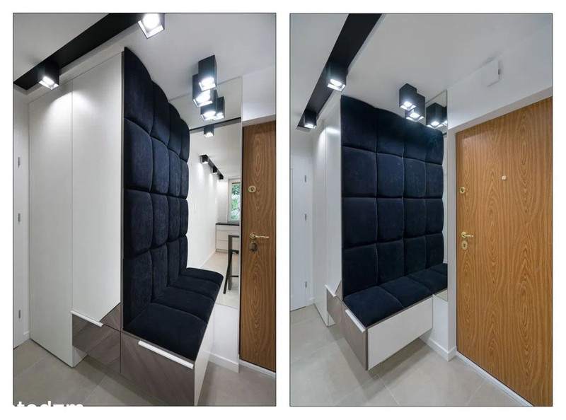 Przedpokój Duża szafa wnękowa, na podłodze gres polerowany.
