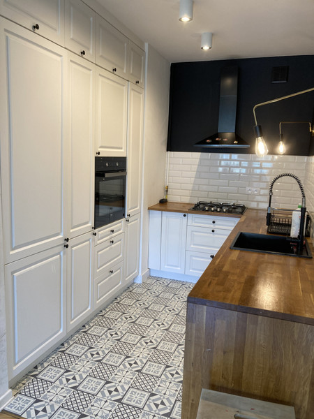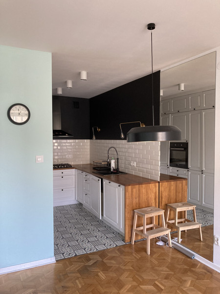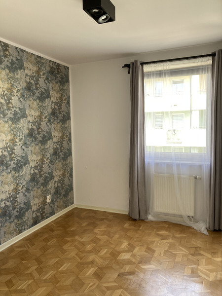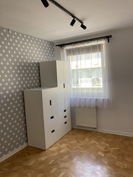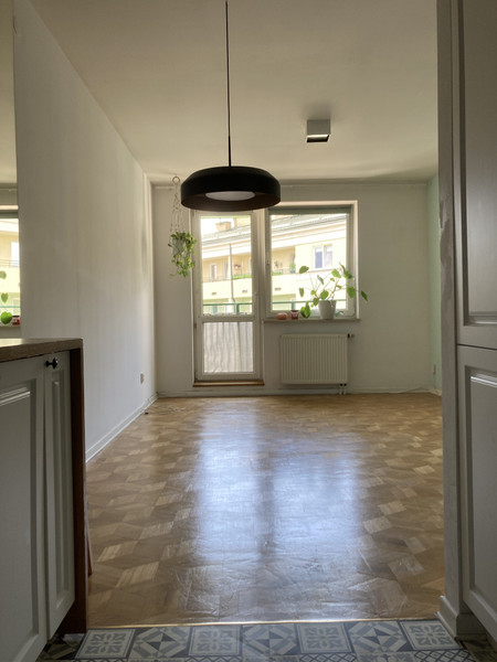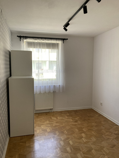 Mieszkanie puste, bez mebli (są tylko wbudowane szafy). Ściany w pokojach pomalowane na biało.