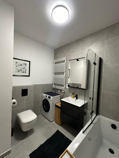 W budynku i na osiedlu dostępne są liczne udogodnienia: ochrona całodobowa, monitoring, 2 windy, rowerownia, wózkarnia, stacja ładowania dla pojazdów elektrycznych, zielony teren z piaskownicą i placem zabaw, stolikami i ławeczkami.