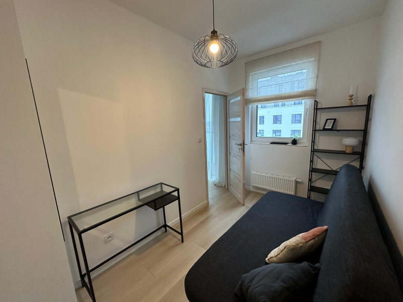 Wynajmę zupełnie nowe, funkcjonalne 2 pokojowe mieszkanie (33 m2) z balkonem (4 m2) i miejscem garażowym w podziemnym parkingu. Mieszkanie znajduje się na 5 z 7 pięter, w budynku apartamentowym - kompleks 3 nowoczesnych budynków, w otoczeniu zieleni, w nowej postindustrialnej części warszawskiego Ursusa.