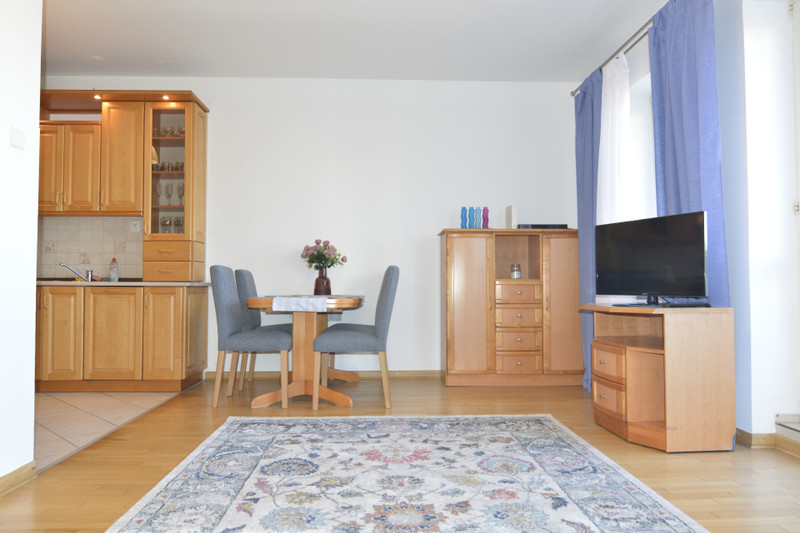 Wyposażenie obejmuje między innymi: zmywarkę, pralkę, TV, internet, pełne umeblowanie.