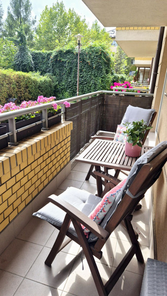 Znajduje się w spokojnej okolicy na terenie monitorowanego 24 h osiedla, blisko pięknego Parku przy Bażantarni i niedaleko Lasu Kabackiego z dobrym dostępem do komunikacji miejskiej ( Metro Kabaty lub przystanek autobusowy).