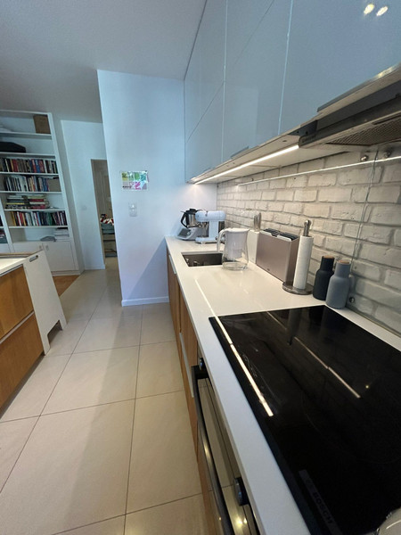 Kuchnia na wymiar, wyposażona w zmywarkę, lodówko-zamrażarkę, piekarnik dual-cook, płytę indukcyjną, okap (sprzęty Bosch/Samsung).