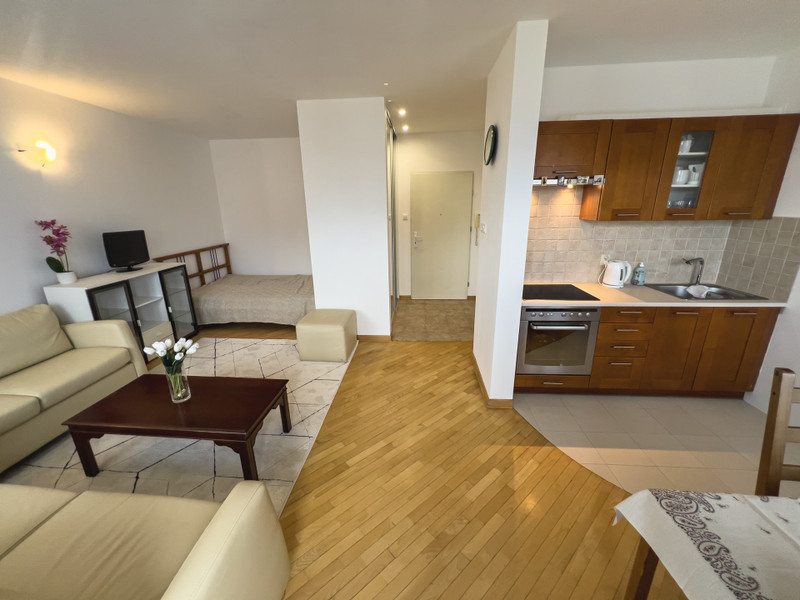 Słoneczne studio położone 100 metrów od Metra Natolin - w pełni wyposażone i urządzone. Mieszkanie znajduje się na 8 piętrze, ekspozycja południowa.