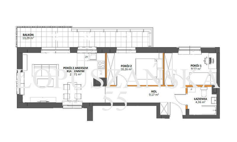 Nowy apartament na wynajem przy ul. Łopuszańskiej 55. Mieszkanie świeżo wykończone, w pełni wyposażone.