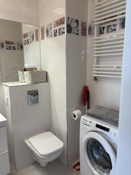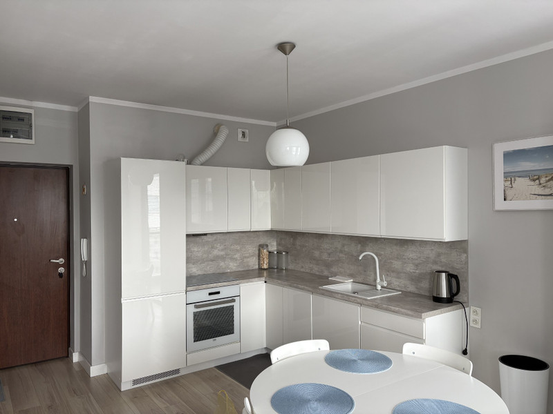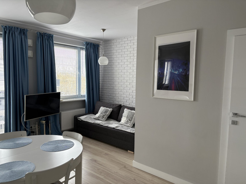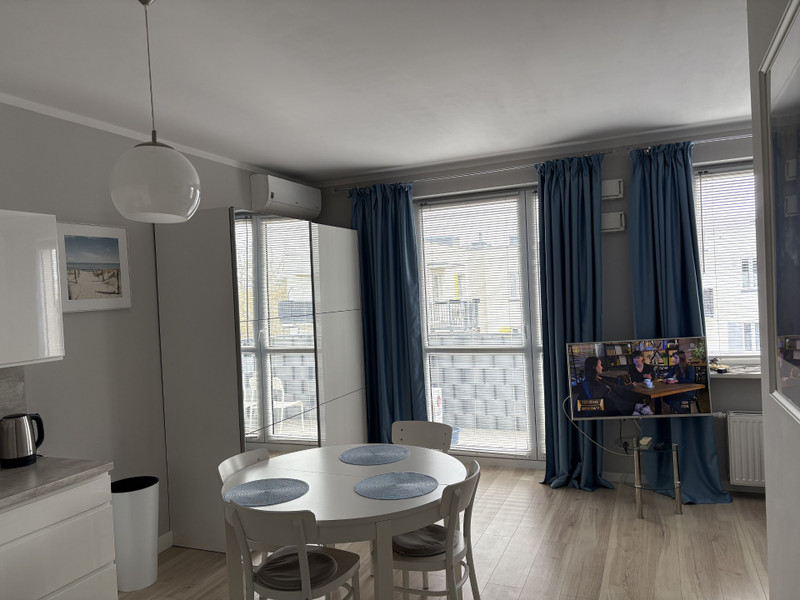 Klimatyzowana kawalerka (z 2017r.) w pełni wyposażona z balkonem 3,7 m2, na czwartym piętrze w 4-piętrowym budynku z windą.