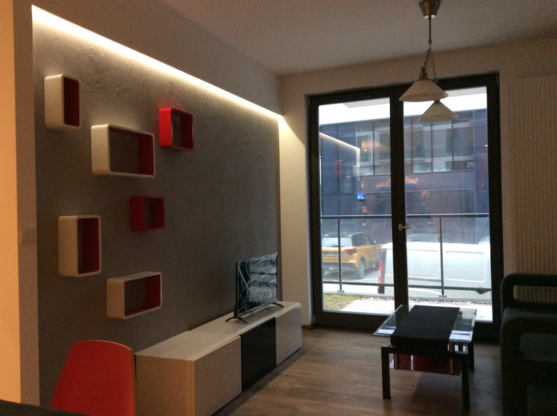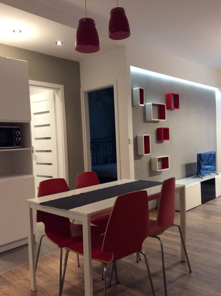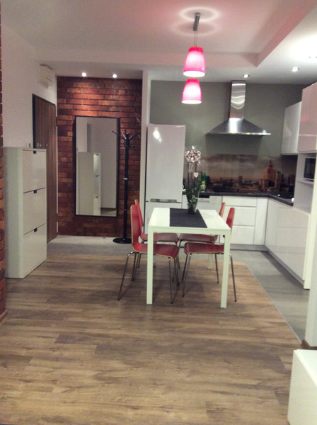 Mieszkanie na wynajem o powierzchni 50 m². Znajduje się na parterze w bloku z 2019 roku. Wyposażone w meble, pralkę, lodówkę, zmywarkę oraz kuchenkę.