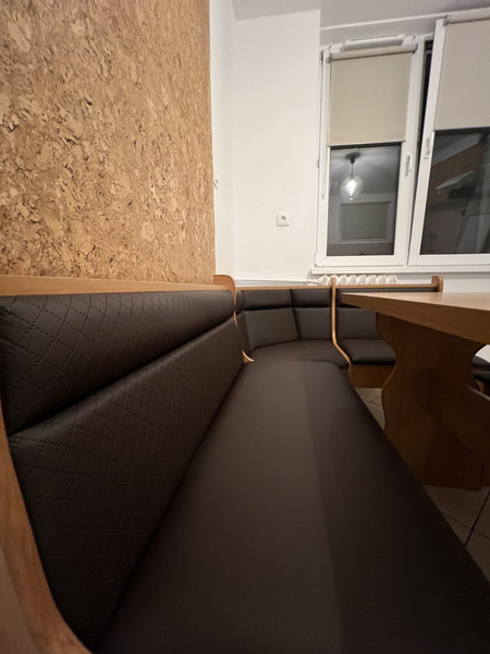 – bardzo duża kuchnio-jadalnia (10 m2) z nowym narożnikiem, stołem, szafkami, palnikami gazowymi, piekarnikiem i nową, nieużywaną lodówką. Doskonała przestrzeń nie tylko dla przygotowywania i spożywania posiłków ale także jako osobne pomieszczenie do odrabiania lekcji, przyjmowania gości, czytania książek, generalnie odosobnienia od drugiej osoby. Istotne zwłaszcza dla par i jeśli ktoś myśli o wspólnym wynajmnie w dwie osoby