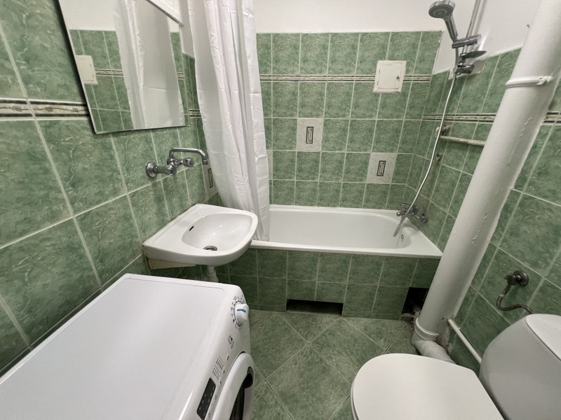 – łazienka (3 m2), jak na kawalerkę wystarczająco duża, żeby zawierała duża wanne z prysznicem oraz nową, nieużywaną pralkę.