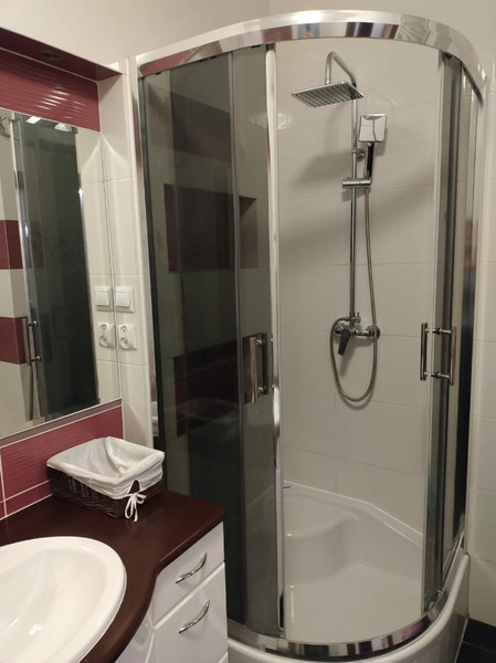 Wyposażenie: Pralka, Kabina Prysznicowa, Piekarnik, Płyta indukcyjna, Zmywarka, Lodówka, Szafy wnękowe, Biurko, Dwie rozkładane sofy