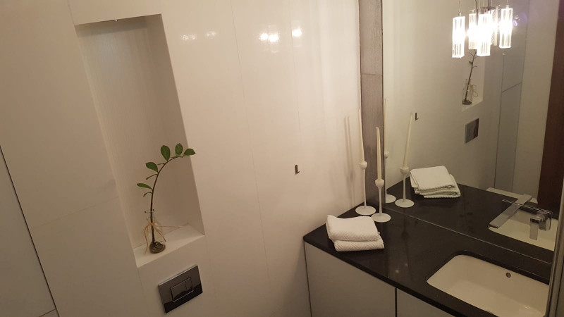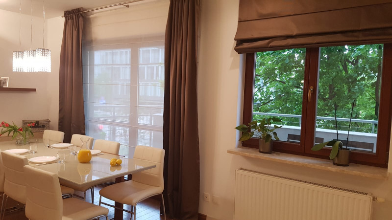 Mieszkanie wykończone w bardzo dobrym standardzie, utrzymane w ciepłych barwach.