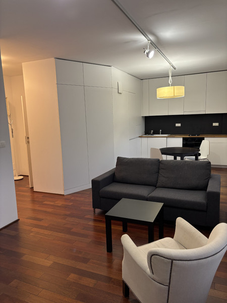 Wspaniała lokalizacja. Tuż przy Warsaw Spire i przy Fabryce Norblina, mieszkanie w stylu minimalistycznym, w apartamentowcu z ochroną 24/24 i recepcją. Mieszkanie ciche, okna na wewnętrzne patio od strony Pańskiej.
