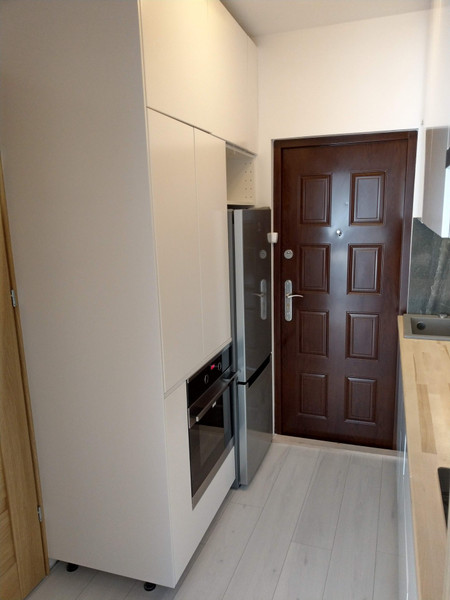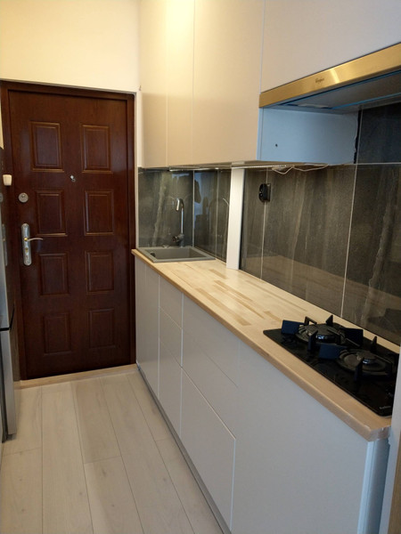 W salonie stół z dwoma krzesłami, wygodna sofa, oraz duża szafa i szafka RTV. Kuchnia umiejscowiona w przedpokoju, zabudowana po sufit, blat drewniany. Umeblowana oraz w pełni wyposażona w sprzęty: pralka, lodówka, piekarnik, mikrofalówka, płyta kuchenna, okap. Mieszkanie mieści się vis a vis Parku Moczydło z dużego balkonu widok na drzewa. W pobliżu sklepy: Biedronka, Supersam, restauracje i inne usługi. Parking pod blokiem.