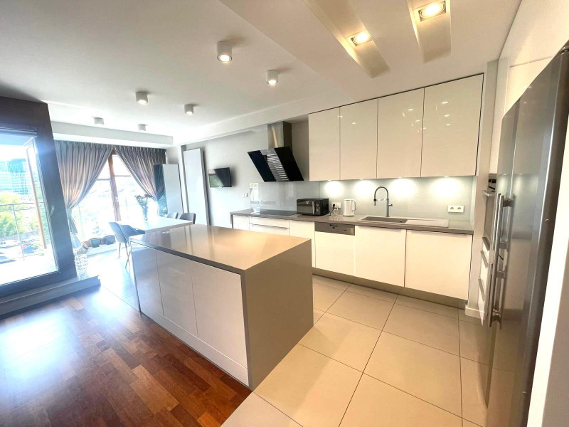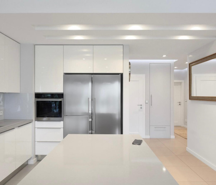 - Nowoczesna kuchnia z dużą wyspą i sprzętami marki Miele