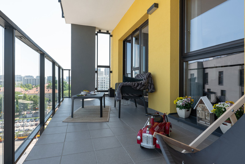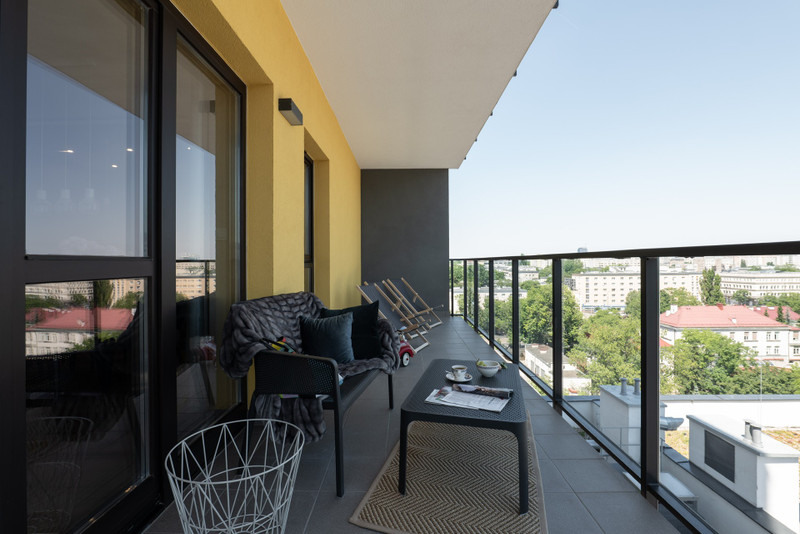 Mieszkanie jest słoneczne , ciche z widokiem na centrum Warszawy , jest w pełni wyposażone ,posiada klimatyzację w salonie .