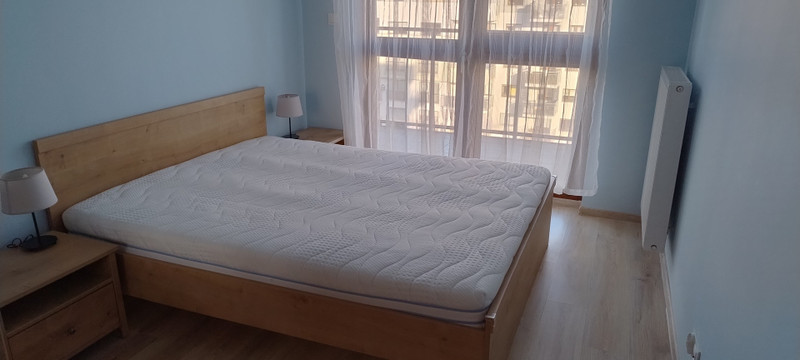 - Sypialnia (łóżko z materacem 160x200cm, duża szafa na wymiar, szafki nocne z lampkami)