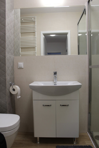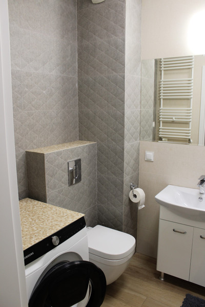 Oferuję do wynajęcia przytulną kawalerkę o powierzchni 40 m². Mieszkanie znajduje się na 4. piętrze w apartamentowcu. Mieszkanie jest w pełni umeblowane, komfortowo wyposażone i posiada windę. Wnętrze jest jasne, z białymi ścianami i drewnianą podłogą w sypialni. W łazience znajduje się prysznic oraz wysokiej jakości wykończenie. W mieszkaniu jest pralka oraz zmywarka. Mieszkanie posiada balkon - na wschodnio południową stronę.