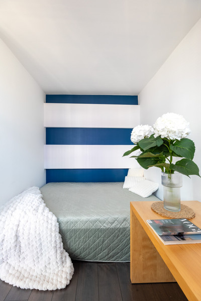 • wydzielona strefa sypialniana z wygodną ramą łóżka i materacem