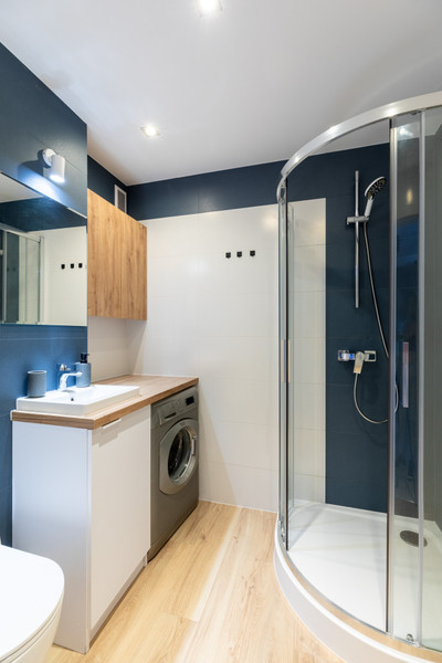 • elegancka łazienka z kabiną prysznicową