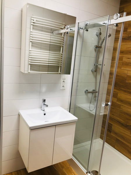 Rozkład mieszkania : przedpokój ( 1 szafa na garderobę w przedpokoju ), 1 pokój ( 1 szafa na garderobę w pokoju ) , łazienka ( prysznic , pralka, szafa ) aneks kuchenny / lodówka, zamrażarka, piekarnik, mikrofala, okap, płyta indukcyjna , zlewozmywak , zmywarka ,balkon . Licznik energii elektrycznej przepisujemy na dzierżawcę.