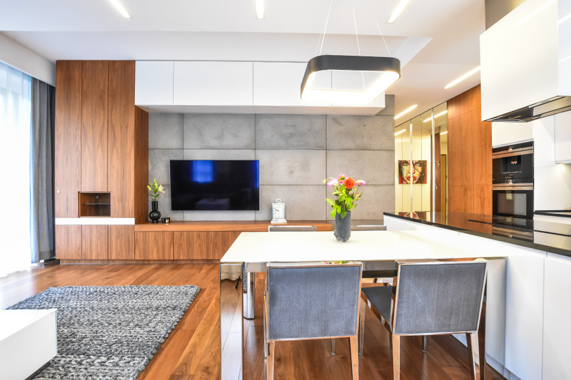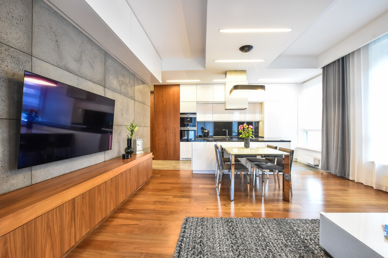 Apartament o wysokim standardzie, wykończony z dbałością o każdy szczegół, przy użyciu wysokiej jakości materiałów. Lokal w pełni umeblowany i wyposażony.
