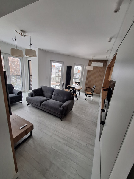 Mieszkanie nowe w wyjątkowej i spokojnej dzielnicy. Zaprojektowane w stylu industrialnym z klimatyzacją (w każdym pokoju) oraz elektrycznymi roletami w oknach. Umeblowane