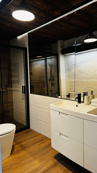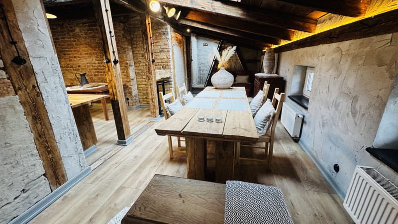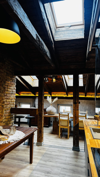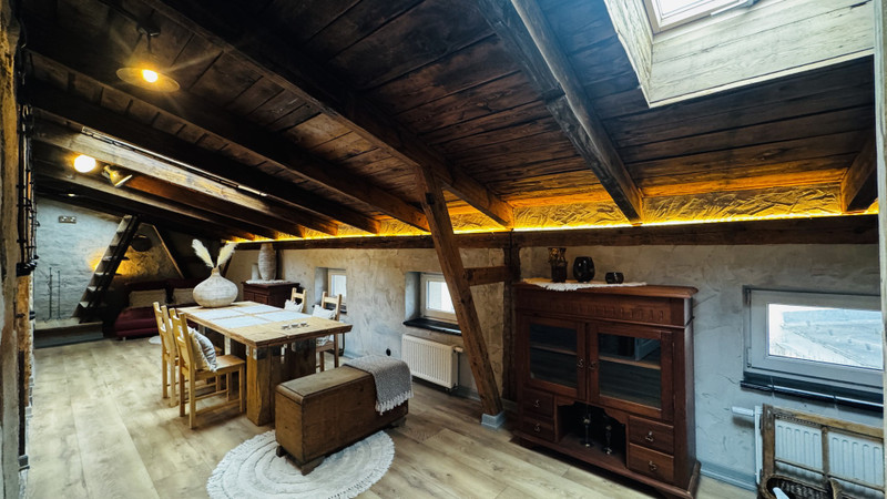 Lokal mieści się na drugim piętrze i został rok temu całkowicie odrestaurowany z zachowaniem starych elementów ( drewno, cegła) Mieszkanie po podłodze ma 80 m2, składa się z dużego salonu, obszernej kuchni, pralni (całkowicie wyposażonej w nowe sprzęty), wnęki na szafę, schowka oraz dużej łazienki oraz tarasu technicznego na dachu budynku ( Z salonu można wydzielić dodatkową sypialnię - w razie potrzeby) Mieszkanie jest doskonale doświetlone trzyszybowymi oknami dachowymi, oraz mniejszymi oknami fasadowymi. Dużym atutem jest doskonała izolacja termiczna lokalu, co wpływa na niski koszt ogrzewania, a także na komfortową temperaturę mieszkania latem, bez konieczności włączania klimatyzacji. Lokal posiada ogrzewanie, gazowe (własny kocioł kondensacyjny z buforem wody) oraz dodatkowo ogrzewanie elektryczne sprzężone z fotowoltaiką (10 KW) wyłącznie do tego lokalu.