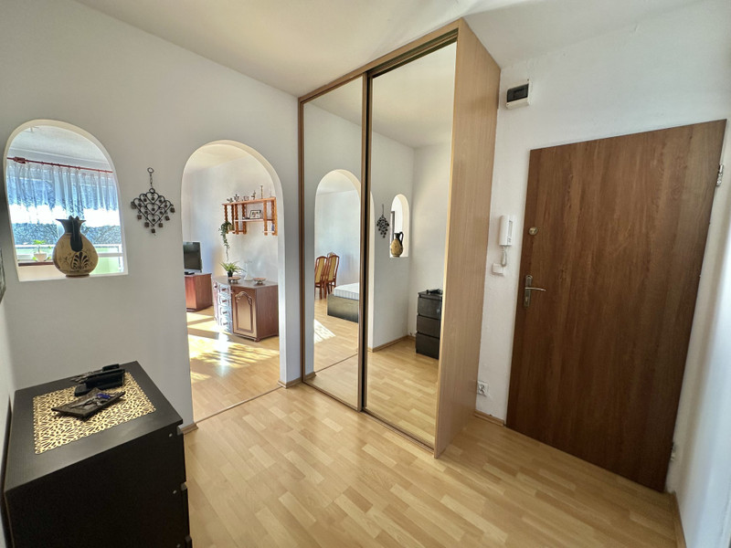 -W korytarzu mieści się duża szafa w zabudowie typu komandor. Na podłogach w pokojach ułożono panele, natomiast w kuchni, łazience i WC – praktyczne płytki. Do dyspozycji najemcy jest również odkurzacz.
