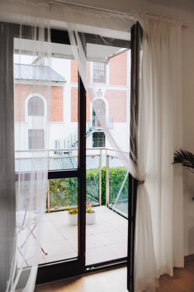 Apartament położony jest w kameralnym, nowoczesnym budynku z pięknie oświetlonym dziedzińcem. Osiedle strzeżone. W klatce dostępna jest winda. Apartament znajduje się na pierwszym piętrze.