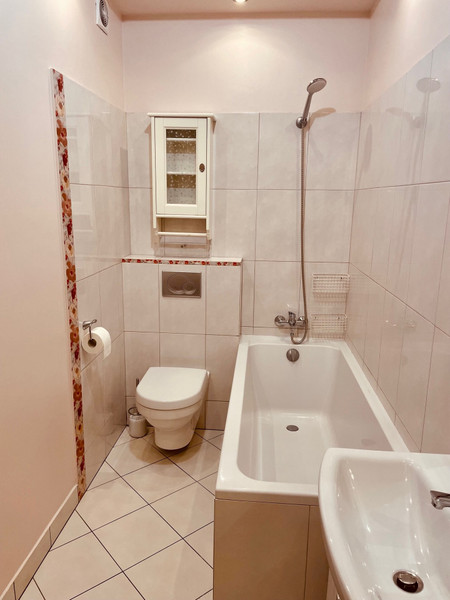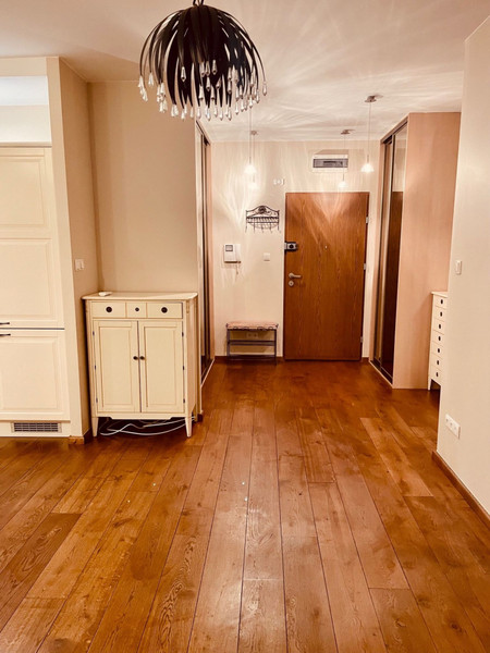 W przedpokoju dwie szafy wnękowe, mieszkanie wyposażone w sprzęty AGD i klimatyzację.