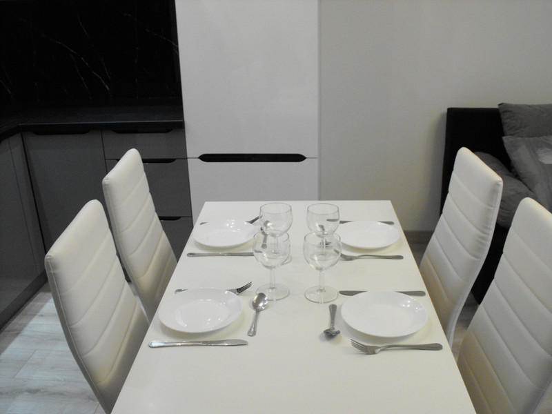 Na całe 50m2 mieszkania składa się: łazienka(na lewo od wejścia), garderoba(na prawo od wejścia), sypialnia(po prawej na wprost od wejścia), kuchnia przechodząca w salon(po lewej stronie na wprost od wejścia) i balkon(na który drzwi są w salonie i sypialni)