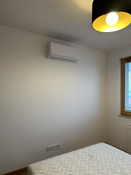 Dodatkowym, dużym atutem są dwa niezależne klimatyzatory — w salonie oraz sypialni, co znacząco podnosi komfort w cieplejsze dni.