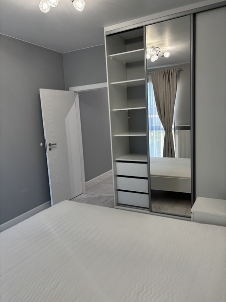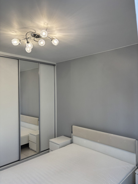 • sypialnia z dużym łóżkiem (160x200) i pojemną wbudowaną szafą z lustrem